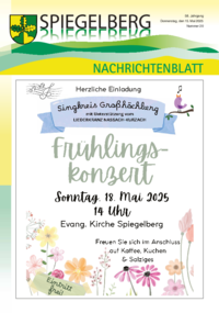 58. Jahrgang Donnerstag, den 15. Mai 2025 Nummer 20 NACHRICHTENBLATT Herzliche Einladung Gr oß höchbe r g Si ngkr e i s mit Unterstützung vom LIEDERKRANZ NASSACH-KURZACH Frrü Fr ühl üh hli liin…