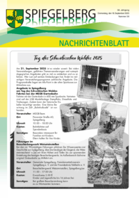 58. Jahrgang Donnerstag, den 18. September 2025 Nummer 38 NACHRICHTENBLATT Tag des Schwäbischen Waldes Am 21. September 2025 ist es wieder soweit. Bei vielen Veranstaltungen, geführten…