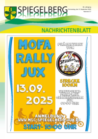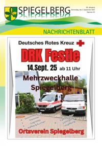 58. Jahrgang Donnerstag, den 11. September 2025 Nummer 37 NACHRICHTENBLATT 2 Nummer 37 11. September 2025 AMTLICHE BEKANNTMACHUNGEN Öffentliche Gemeinderatssitzung in Spiegelberg Die nächste…