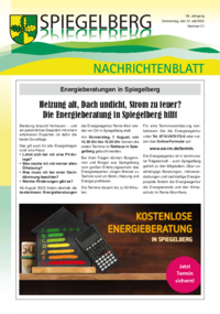 58. Jahrgang Donnerstag, den 31. Juli 2025 Nummer 31 NACHRICHTENBLATT Energieberatungen in Spiegelberg Heizung alt, Dach undicht, Strom zu teuer? Die Energieberatung in Spiegelberg hilft Beratung…