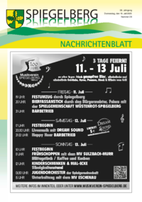 58. Jahrgang Donnerstag, den 10. Juli 2025 Nummer 28 NACHRICHTENBLATT 100 JAHRE 11. - 13 Juli an allen Tagen: 11. Juli FESTUMZUG BIERFASSANSTICH SPIELGEMEINSCHAFT WÜSTENROT-SPIEGELBERG…